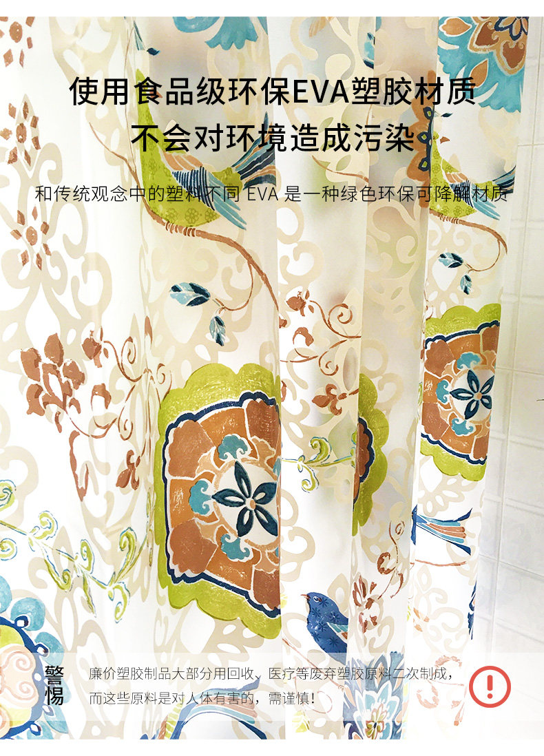 Moma Chinese American Retro Frosted Shower Curtain Waterproof Thickened Mildew Proof Bathroom Shower Curtain Batik Flowers And Birds
